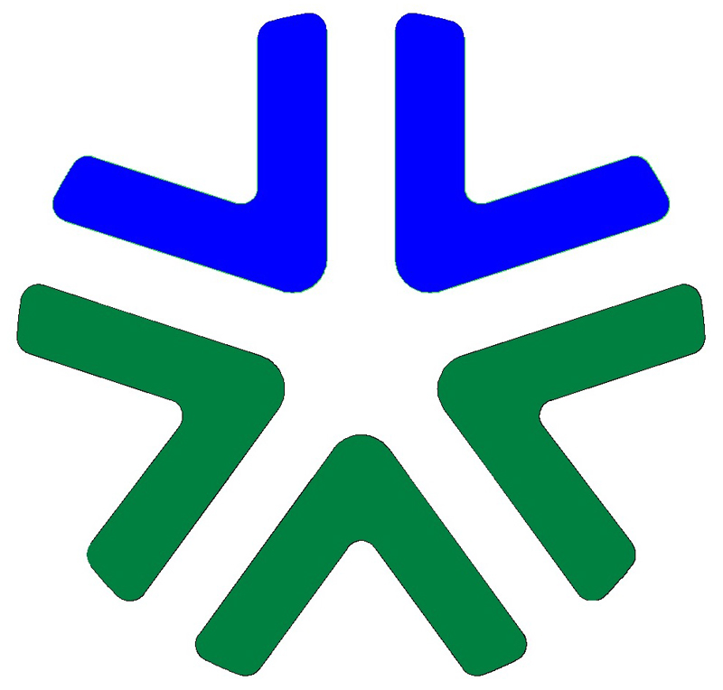 創業以来、礎である推進工法のセミシールドマシンのオーガーヘッドをモチーフとし、大空のブルーと大地のグリーンをカラーコンセプトとし頭文字の大を白抜きで現すマークに「調和とバランスとれた総合建設企業へ」のイメージを託しました。